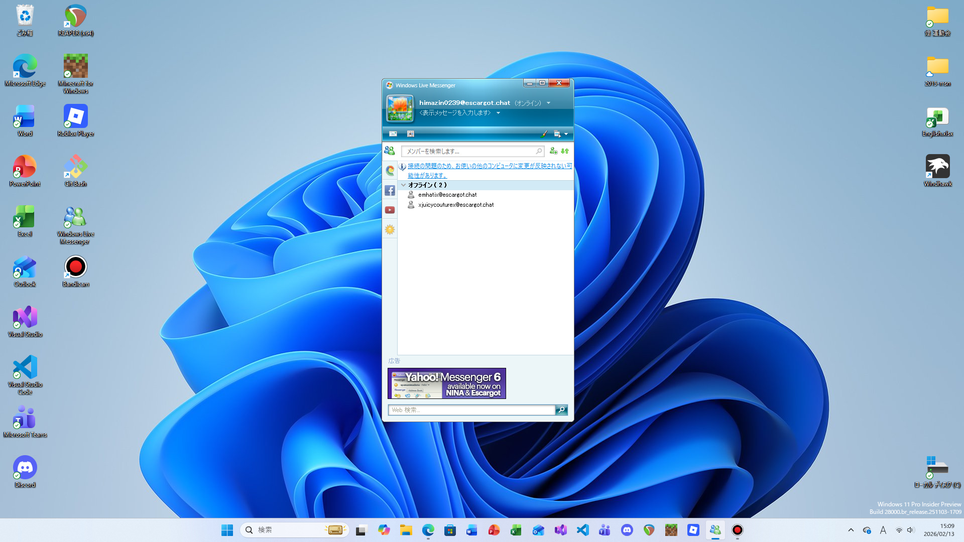 MSN・Windows Live Messengerが現代に復活!?escargotというものを入れてみた!